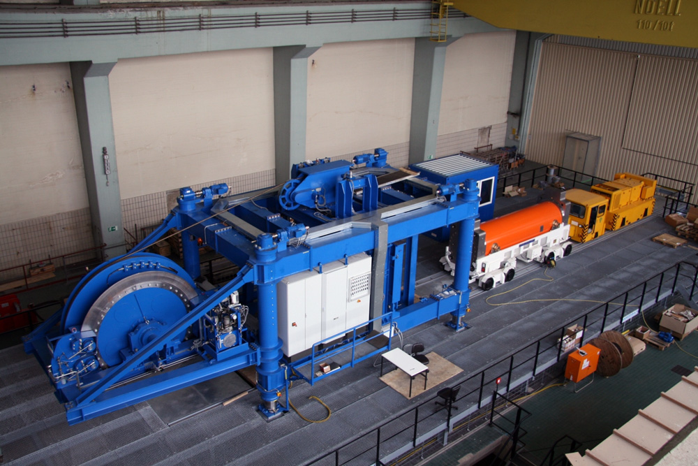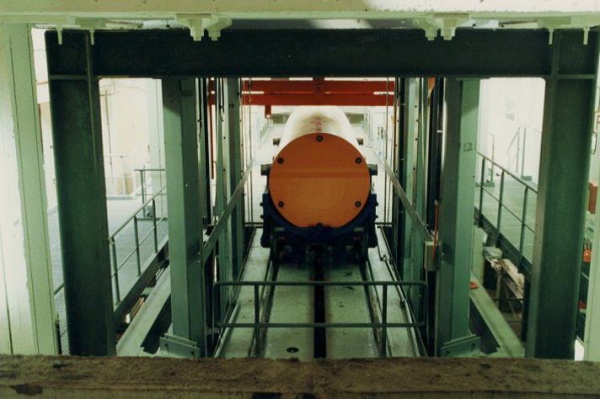 Например, были разработаны уникальные шахтные подъемники грузоподъемностью до 85 т (рис. 4), а также система для транспортировки упаковок с РАО и их установки на захоронение в вертикальные скважины (рис. 5).