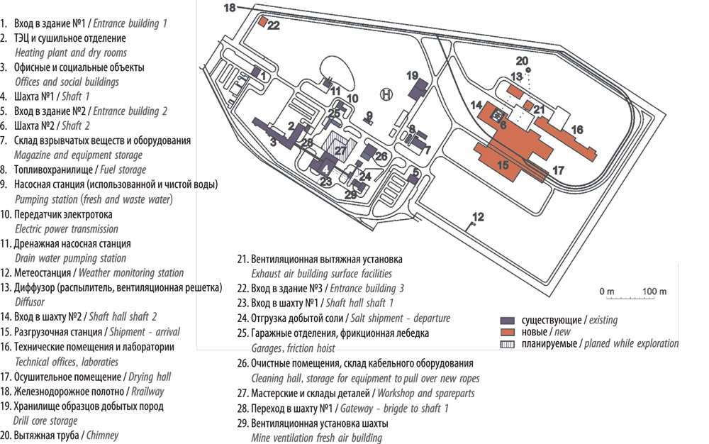Еще в 1980-1990-х годах на площадке «Горлебен» было выполнено множество исследований соляного свода. До введения моратория, помимо подземного исследовательского объекта, здесь также было построено множество наземных сооружений (рис. 2). Уникальность площадки состоит в том, что значительная часть работ по ее характеризации и созданию наземной инфраструктуры уже выполнена. Из всех площадок, которые в настоящее время рассматриваются для размещения объектов захоронения РАО, «Горлебен» по-прежнему остается одной из наиболее технически развитых.